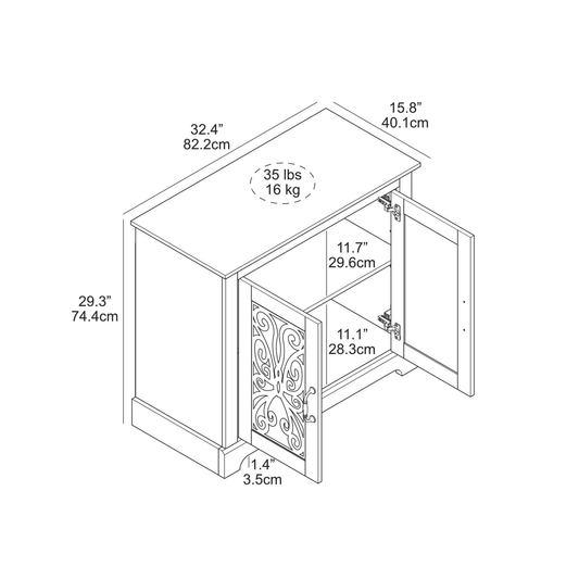 Galano 2-Door Accent Cabinet with Decorative Cut-Out Doors 32.4" W × 15.7" D × 29.3" H