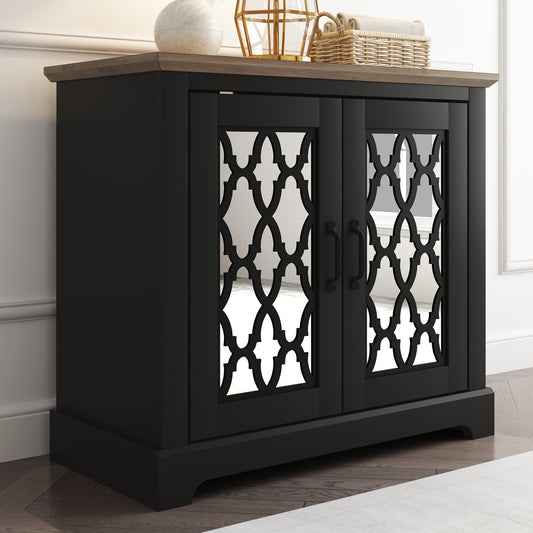 Galano 2-Door Mirrored Accent Cabinet with Cut-Out Design 32.4" W x 15.7" D x 29.3" H