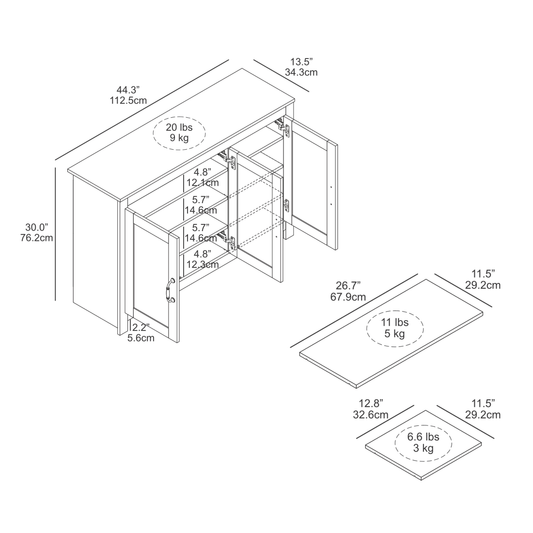 Galano 2-Door Cabinet with Bottle Storage and Cut-Out Door Design 45.7" W × 15.7" D × 29.3" H