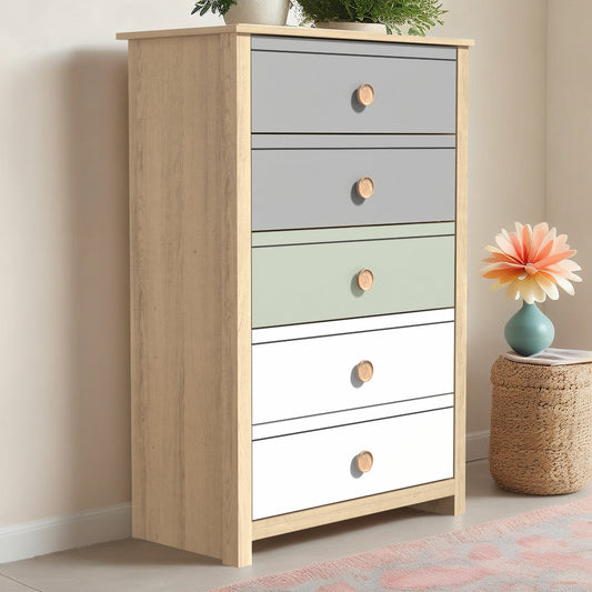 Galano 5-Drawer Chest with Mixed Color Fronts in Oslo Oak 30.7" W x 15.7" D x 46.2" H