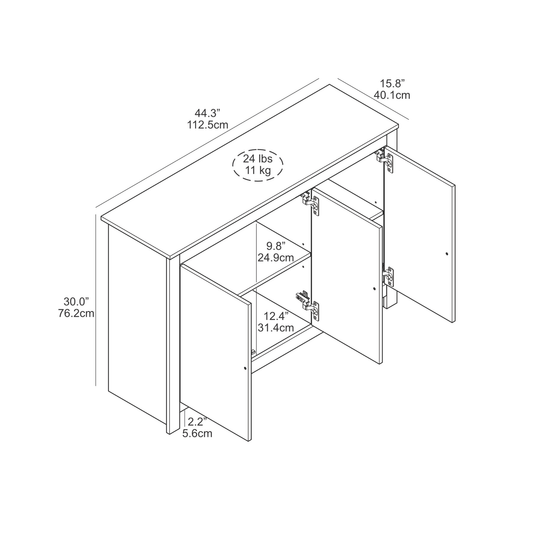 Galano 3-Door Sideboard with Decorative Cutout Doors 44.3" W × 15.7" D × 30" H