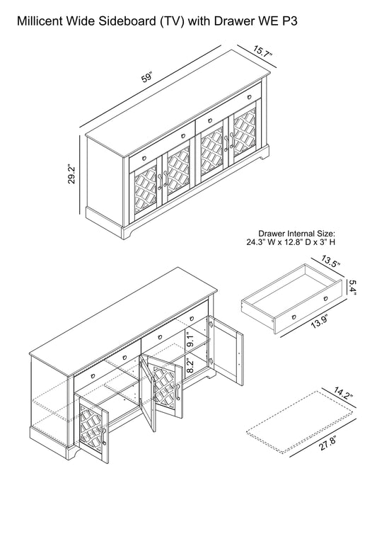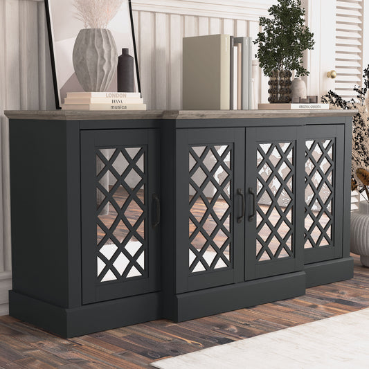 Galano 4-Door Accent Sideboard with Mirrored Cut-Out Doors 60.4" W × 18.2" D × 29.3" H