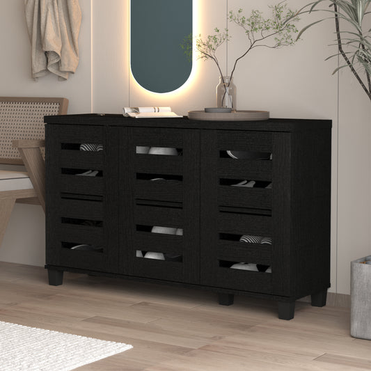 Galano 3-Door 16-Pair Shoe Storage Cabinet with Adjustable Shelves in Black Oak 45.3" W × 13" D × 28" H