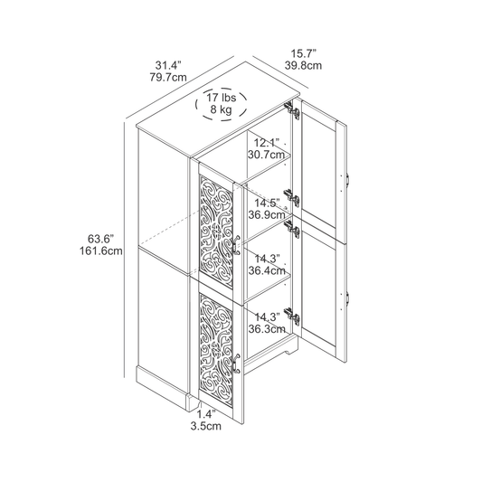 Galano 4-Door Kitchen Pantry with Adjustable Shelves, 31.4" W x 15.7" D x 63.6" H