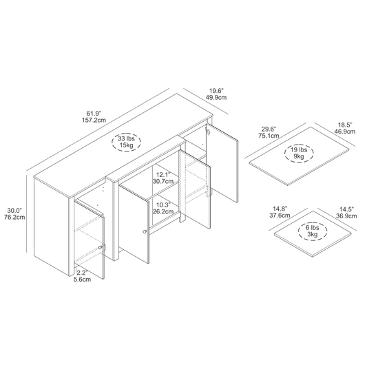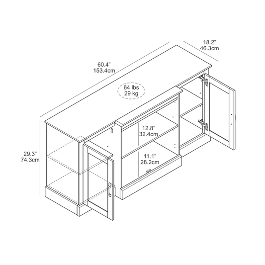 Galano 4-Door Sideboard with Mirrored Cut-Out Storage 60.4" W × 18.2" D × 29.3" H