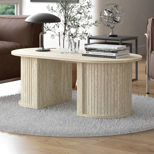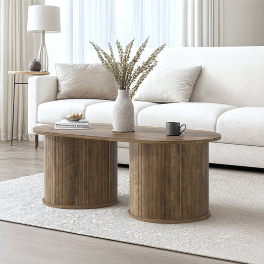 Galano Fluted Oblong Coffee Table with Semi-Round Base 39.2" W × 19.5" D × 14.9" H