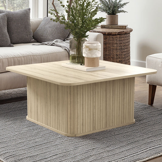 Galano Fluted Square Coffee Table in Wood Finish 31.3" W × 31.3" D × 14.9"