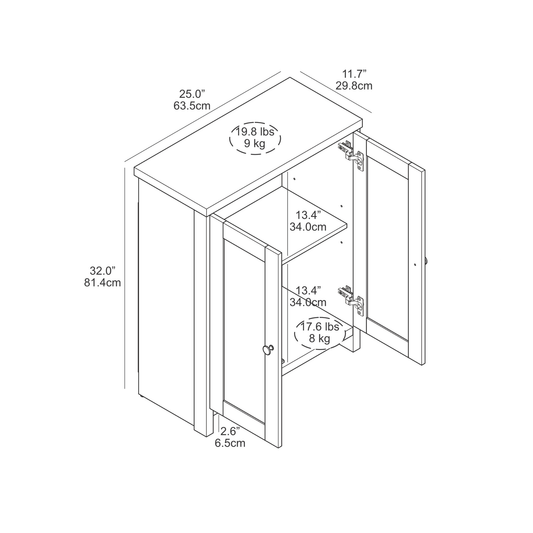 Galano Freestanding Bathroom Cabinet with Mirrored Doors in Dusty Gray Oak 25" W × 11.7" D × 32" H
