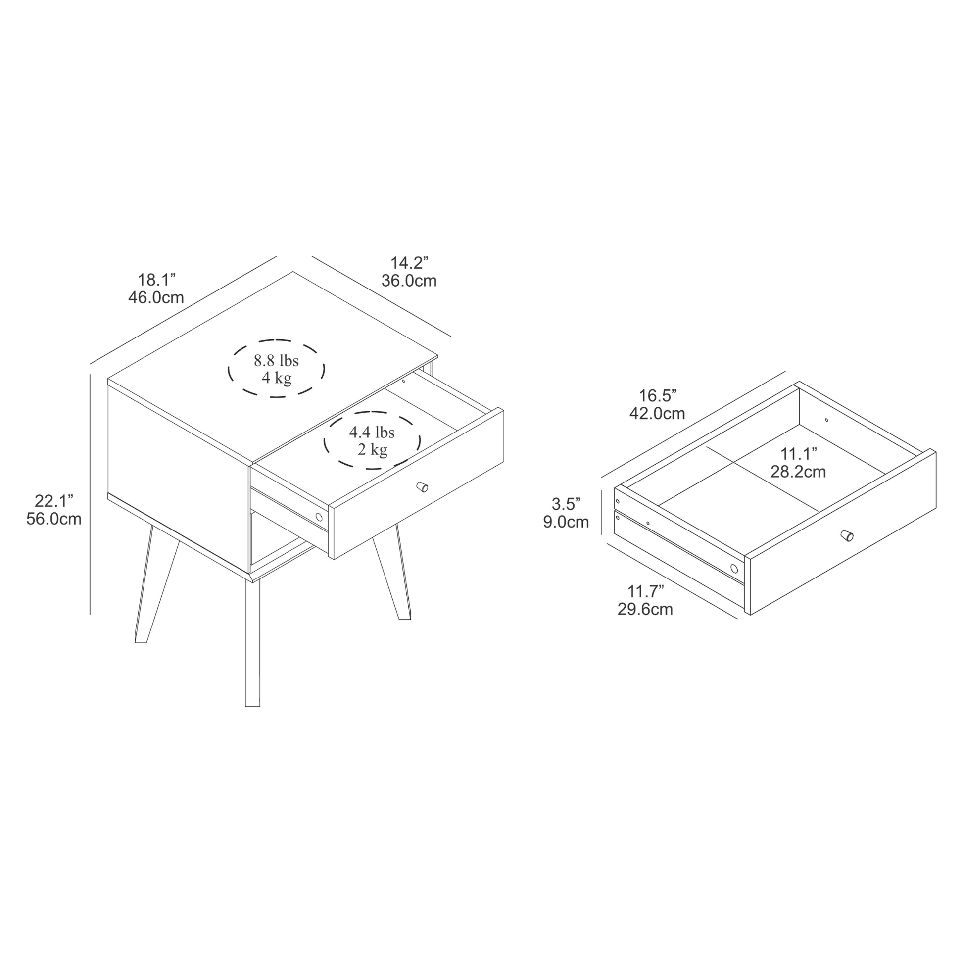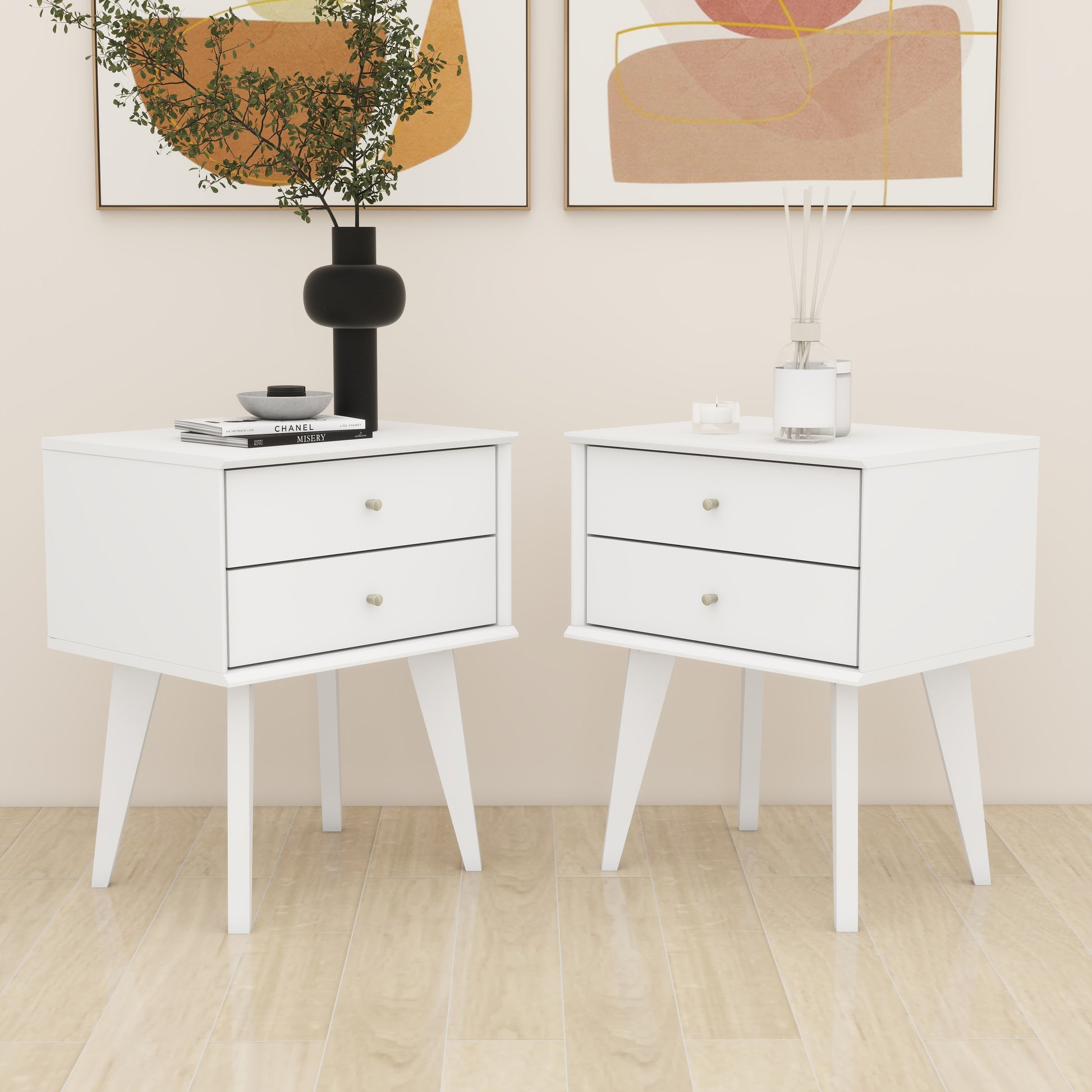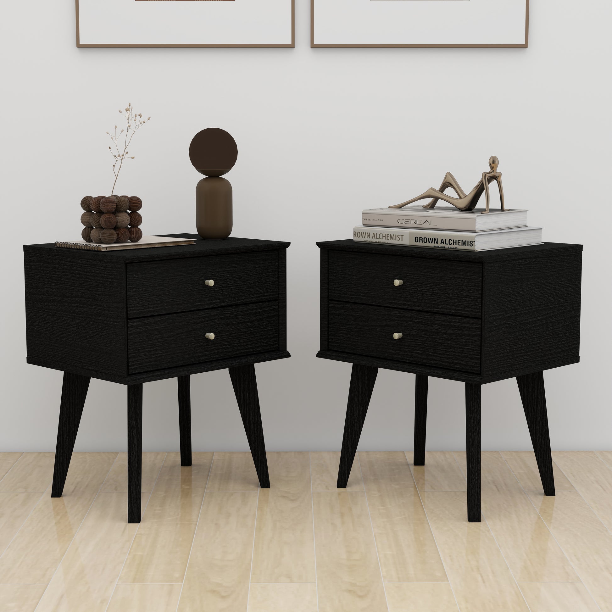 Galano 2-Drawer Nightstand with Angled Legs 18.1" W x 14.2" D x 22.1" H